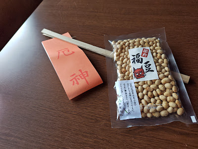In the afternoon, I went to Taga Taisha with my daughter to buy Yakujinsai (an amulet of the year). Taking a walk would also be good for me. It was Setsubun (the day before the beginning of spring), and when we arrived at the shrine, Bean-Throwing by the people who celebrated their 60th birthday was just about to begin. A lot of people were gathering in order to get the bean or lucky mochi from the celebrated people who were putting on red hats. It was fun and lucky to be able to see such a seasonal celebration.