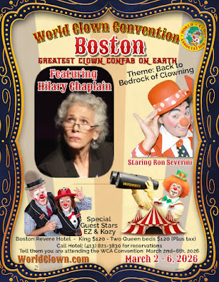 世界クラウン大会(World Clown Convention)が今年はボストンでありました。スケジュールを見ると3月2日から6日まで。詳しくは分かりませんがクラウンについて色々なことを勉強したり、それぞれの分野で競技したり、プロのクラウンのショーも観られたり。参加者はホテルに泊って、朝から晩までメニューがぎっしりです。(好きなものに参加すればよいらしいですが)